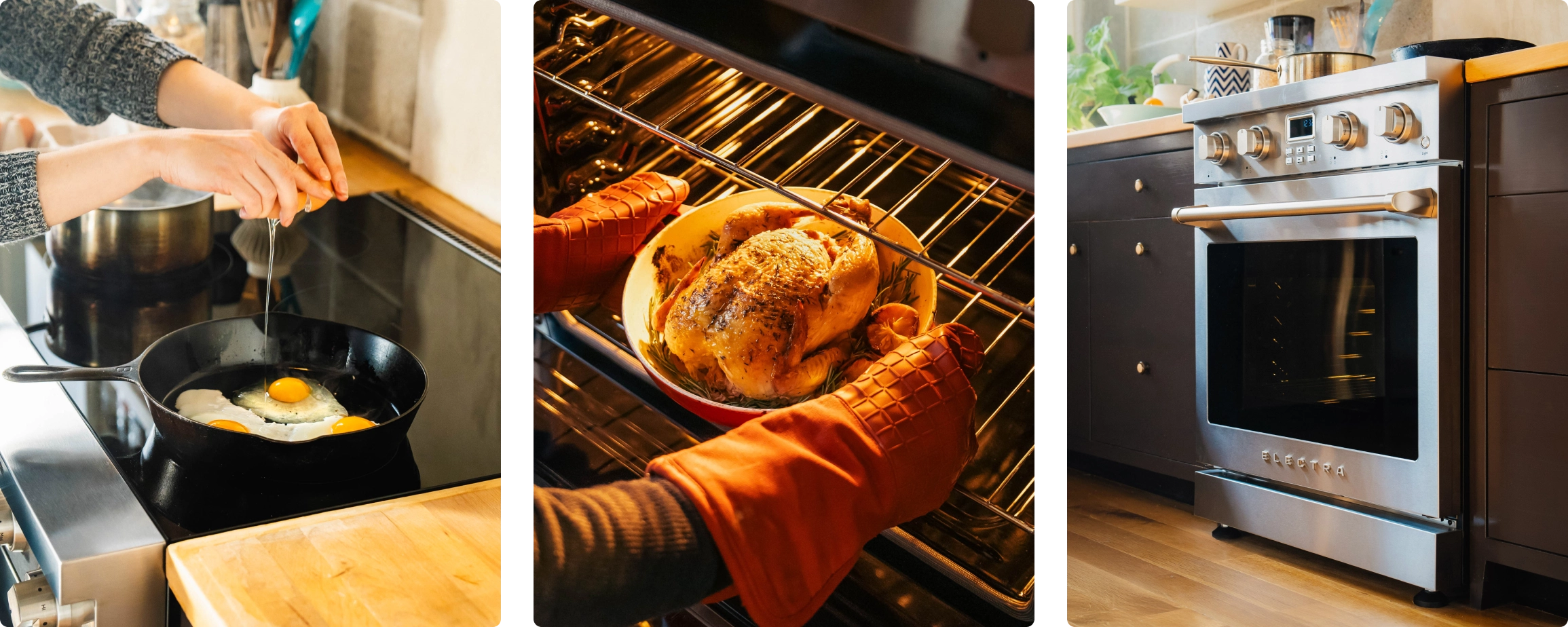 With Electra, you use the outlet already behind the stove. No electrical work, no permits, and installation takes less than an hour. This isn't about cutting corners, it's about recognizing that the barrier to better cooking shouldn't be your home's electrical system.